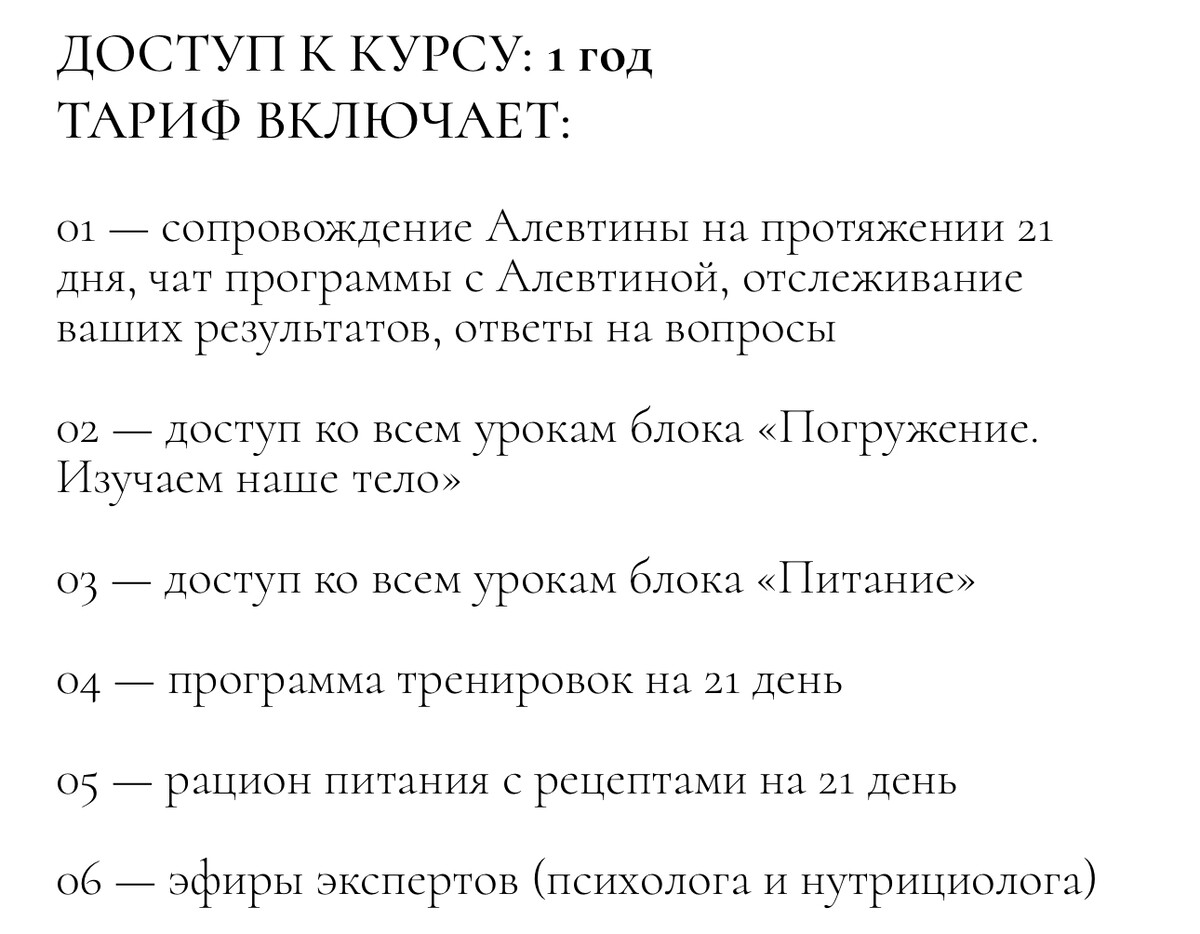 На тариф с сопровождением Алевтины, сертифицированным фитнес-тренером и нутрициологом (количество мест: 5)